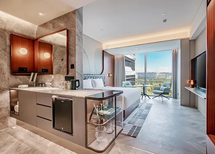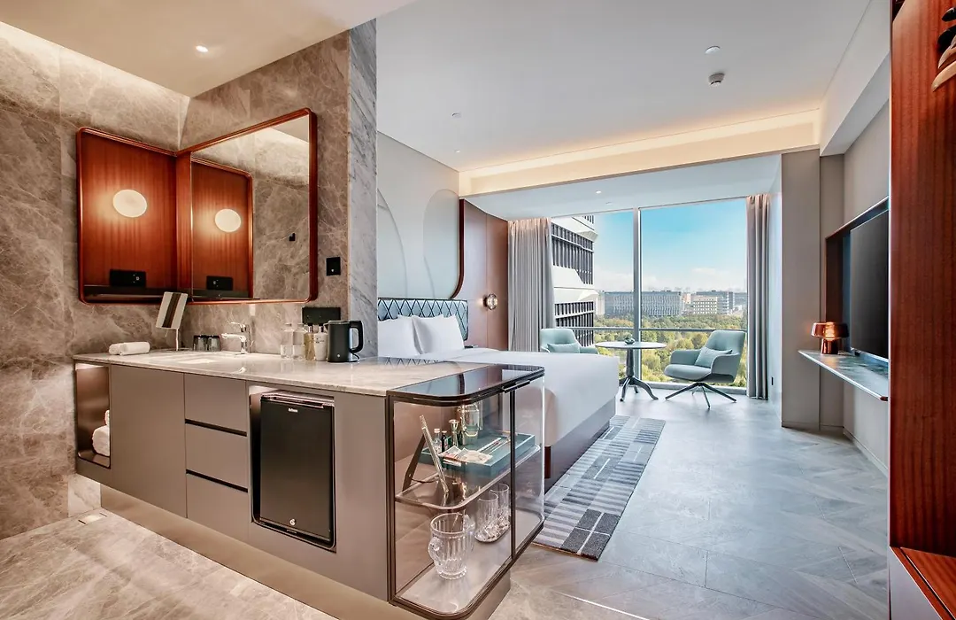 This Shanghai hotel stands a short way from Xingzhong Road tube station. The hotel is situated just 1.2 km from Qibao Town. Caobao Rd Xingxi Rd bus stop, offering a direct link to the city attractions and main places, is within easy reach of the Maxx By Steigenberger Shanghai,Hongqiao.